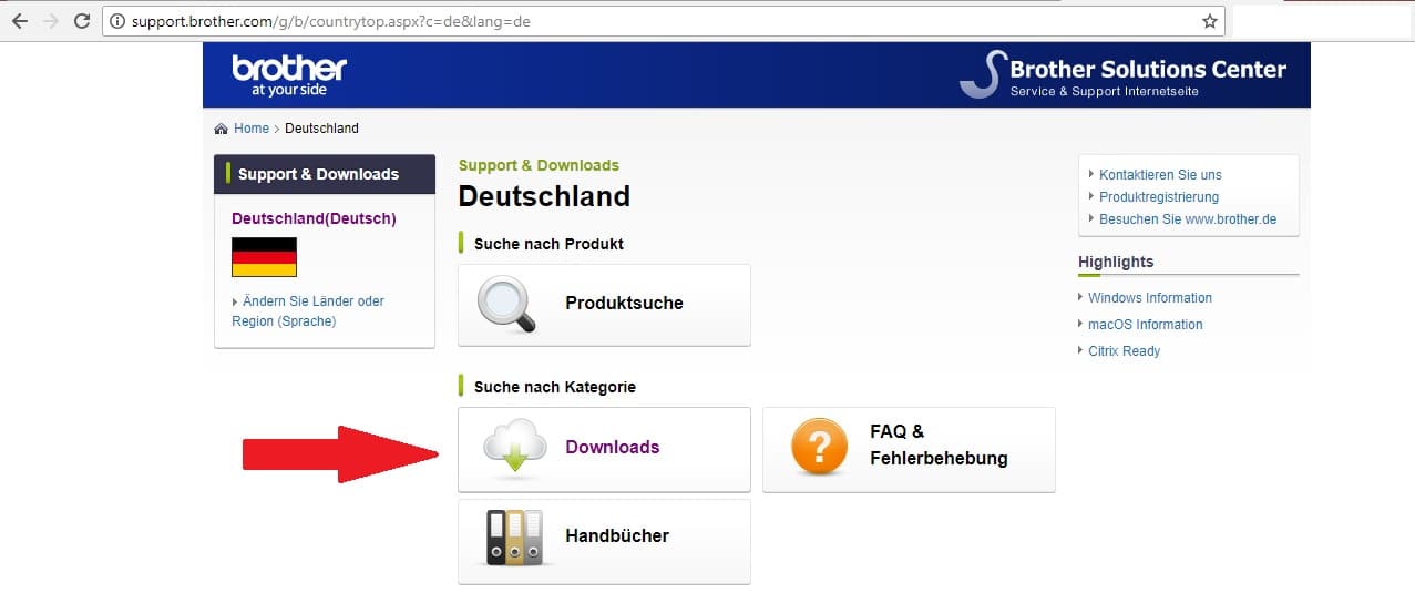Im Brother-Downloadcenter finden Sie einige hilfreiche Unterkategorien, die Sie bei der Arbeit mit Ihrem Drucker, Scanner oder Multifunktionsgerät unterstützen können. Darunter zählt auch der Download für Treiber und Updates.